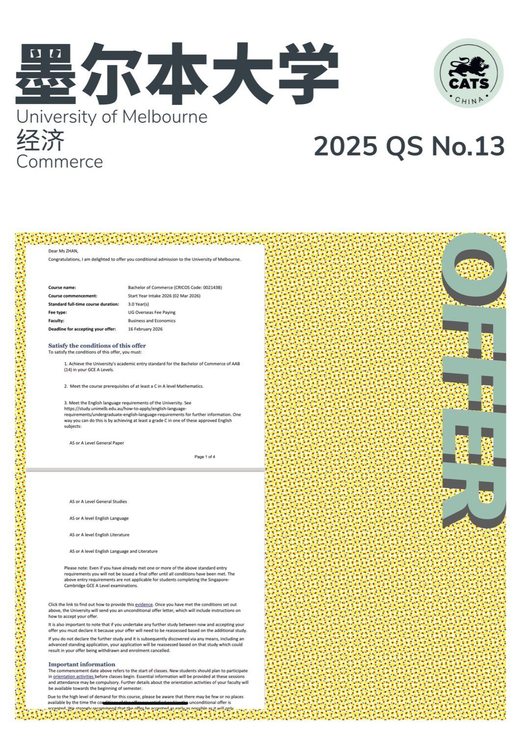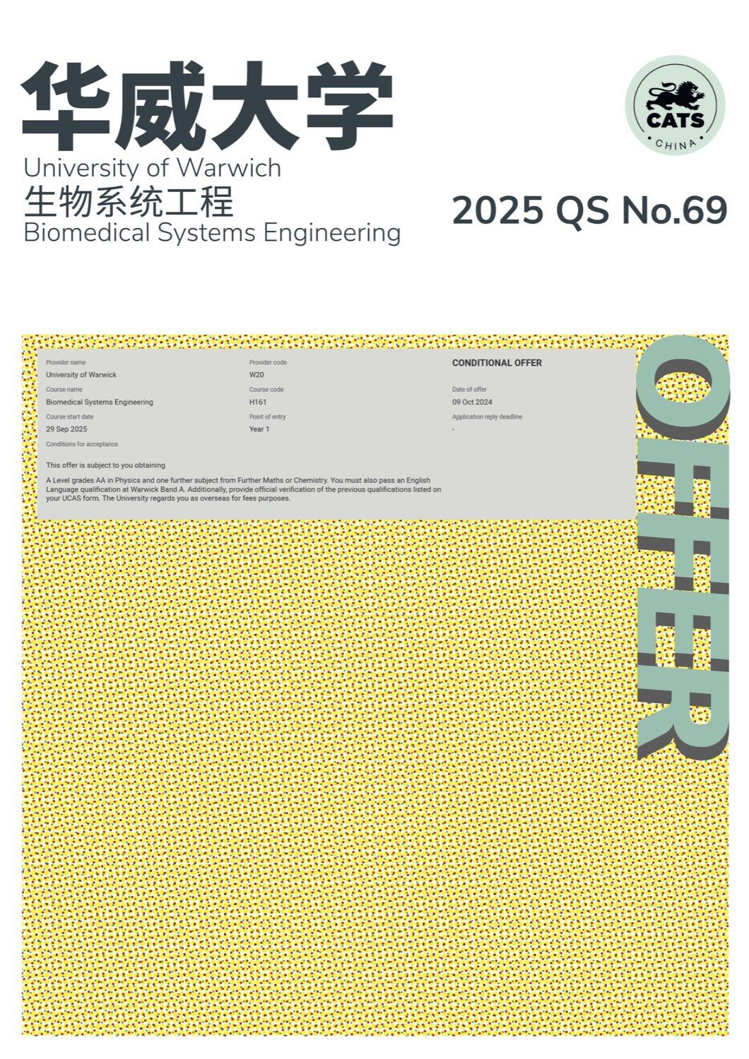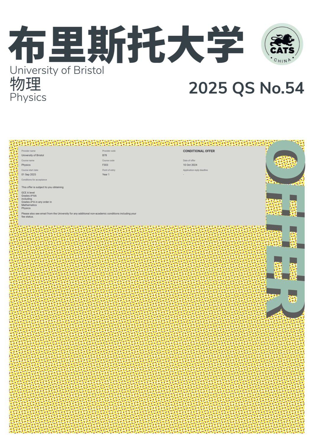 2024年,剑桥文理与剑桥艺术中国(CATS China & CSVPA China)毕业生升学成绩: